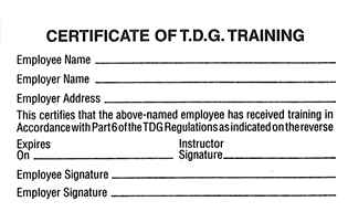 Certificate of Transportation of Dangerous Goods Training Cards (25 cards/package)