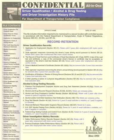 Allows you to keep Driver Qualification Forms, Alcohol & Drug Forms, and Safety Performance History Forms secure and in one convenient location