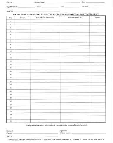National Safety Code Maintenance Forms